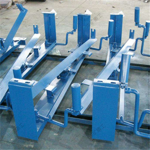 液壓糾偏裝置是由檢驅(qū)輪、油泵、復(fù)合油缸、油管、固定支架構(gòu)成。當(dāng)皮帶運(yùn)行跑偏時(shí),皮帶和檢驅(qū)輪接觸,檢驅(qū)輪帶動(dòng)油泵旋轉(zhuǎn),輸出液壓油控制驅(qū)動(dòng)油缸往復(fù)運(yùn)動(dòng),帶動(dòng)調(diào)心托輥偏轉(zhuǎn),使調(diào)心托輥的線運(yùn)動(dòng)方向與皮帶的運(yùn)動(dòng)方向形成。