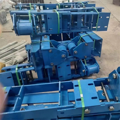 托繩輪為保證無(wú)極繩連續(xù)牽引車(chē)鋼絲繩有一定的初張力必須配置張緊裝置。本設(shè)備張緊裝置為重錘式,主要由框架、張緊繩輪、動(dòng)輪組、轉(zhuǎn)向輪、配重塊和防護(hù)網(wǎng)等組成。