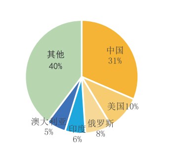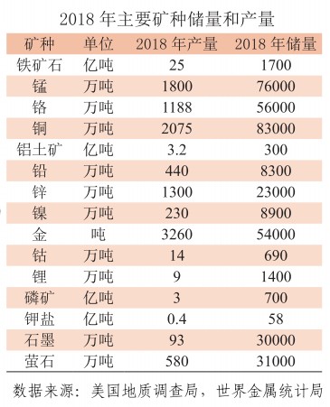 2018年各國(guó)礦產(chǎn)資源總產(chǎn)量占比