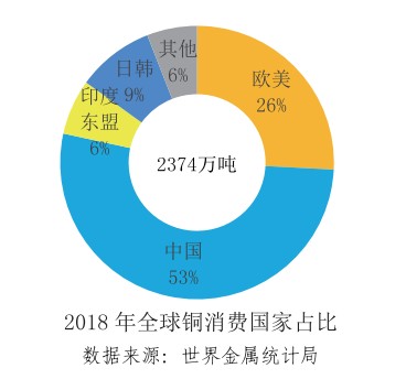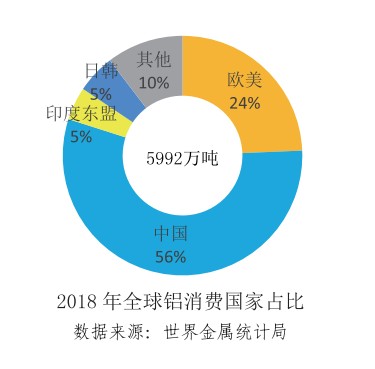 亞洲新興經(jīng)濟(jì)體已成為全球金屬礦產(chǎn)消費(fèi)中心。2018年中國(guó)、印度、東盟等亞洲新興經(jīng)濟(jì)體,鐵、銅、鋁消費(fèi)全球占比分別為59%、59%和61%。