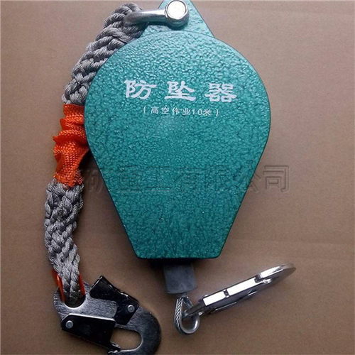 該產(chǎn)品利用物體下墜的速度差進行自控。產(chǎn)品高掛低用,使用時只需將錦綸吊繩跨過上方堅固鈍邊的結(jié)構(gòu)物上,將鉤扣除吊環(huán),將自控器懸掛在使用者上方,把繩上的鐵鉤掛入帶上的半圓環(huán)內(nèi),即可使用,正常使用時,繩將隨人體自由伸縮,不需經(jīng)常更換懸掛位置。在器內(nèi)機構(gòu)的作用下,繩一直處于半緊張狀態(tài),使使用者輕松自如,無牽無掛地工作。一旦人體失足墜落,繩的拉出速度加快,器內(nèi)控制系統(tǒng)立即自動鎖止,使繩下墜不超過0.2m,沖擊力小于2942N,對人體毫無傷害,負荷一旦解除又能恢復正常工作,工作完畢后繩將自動回收到器內(nèi),便于攜帶。