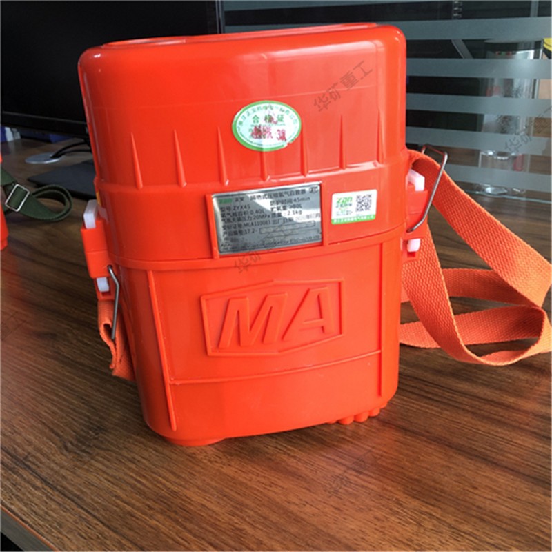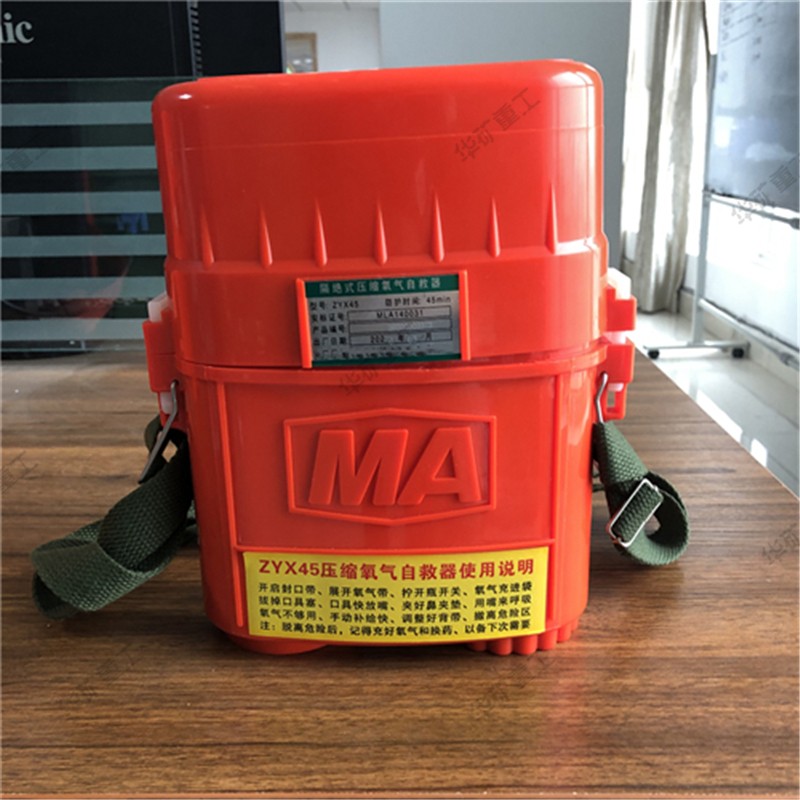 壓縮氧自救器又叫隔絕式壓縮氧自救器,是以高壓壓縮氧氣作為氧氣源的可重復(fù)使用的自救逃生器材,主要在煤礦或普通大氣壓的作業(yè)環(huán)境中發(fā)生有毒有害氣體突出及缺氧窒息性災(zāi)害時(shí)使用。人體呼吸系統(tǒng)內(nèi)部與外界隔絕,供遇險(xiǎn)人員快速自救逃生時(shí)使用。具有重量輕、體積小、呼吸舒適和攜帶方便等特點(diǎn)。根據(jù)防護(hù)時(shí)間有15、30、45min幾種規(guī)格。