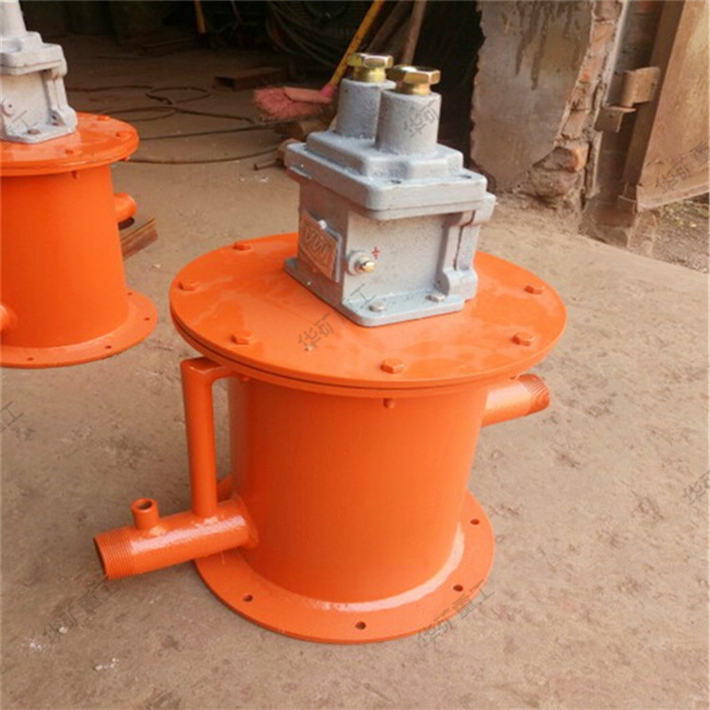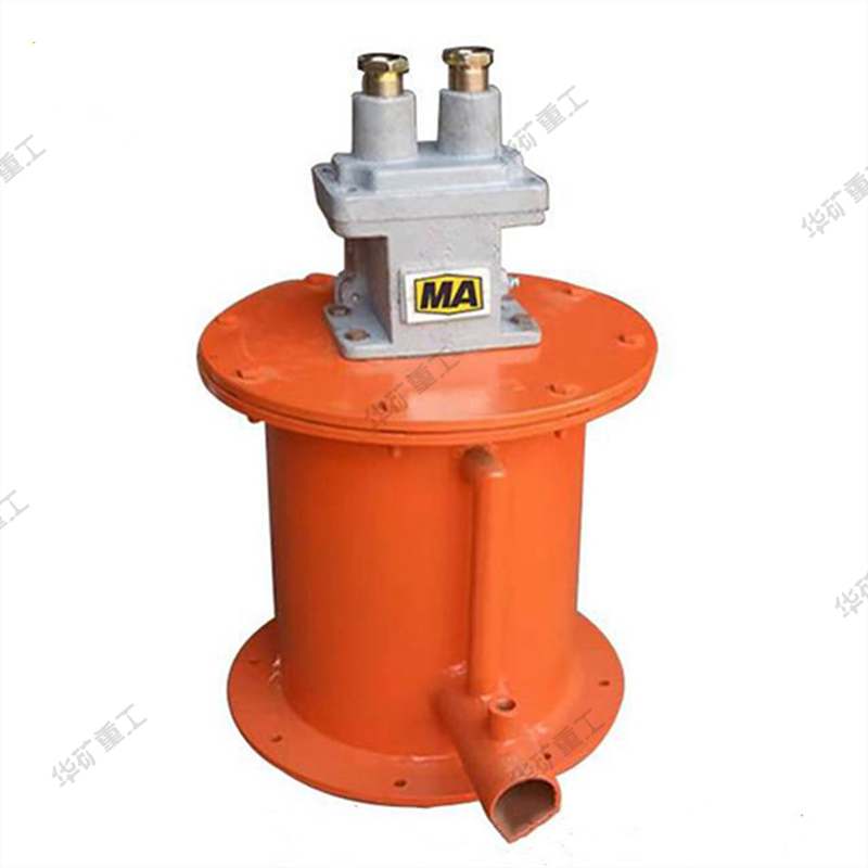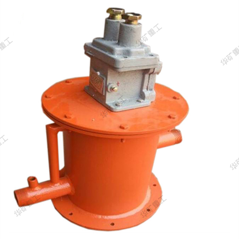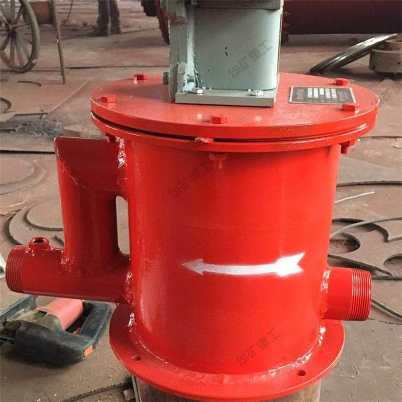 斷水保護(hù)裝置由隔爆外殼和內(nèi)部組裝微動(dòng)開關(guān)組成,外殼包括主腔和接線箱,運(yùn)動(dòng)部分為直動(dòng)式。水箱內(nèi)有不銹鋼浮子,浮子室有進(jìn)水口,浮子、密封墊及排氣管出水口組成;利用水的浮力使浮子浮起打開微動(dòng)開關(guān),保證泵的控制回路接通;礦用微動(dòng)隔爆開關(guān)管道無(wú)水時(shí)浮子落下,微動(dòng)開關(guān)打開,泵的控制回路斷開。還可根據(jù)需要在出水口安裝水壓表顯示供水管的壓力(安裝磁化水室)。