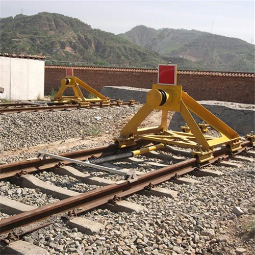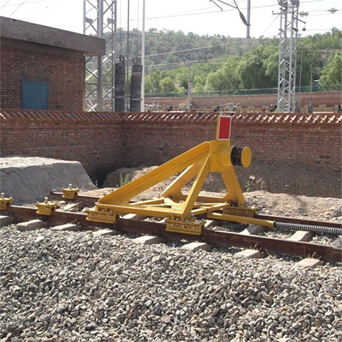 固定擋車(chē)器主要用于鐵路盡頭線上的防撞擋車(chē)安全防護(hù)設(shè)備,緩沖頭與車(chē)鉤之間通過(guò)緩沖橡膠板接觸,承受溜逸車(chē)輛車(chē)鉤的撞擊,迫使溜逸車(chē)輛停止溜逸,針對(duì)使用單位的實(shí)際情況,為滿足使用單位提出的具體要求而設(shè)計(jì)的產(chǎn)品。占用線路短,結(jié)構(gòu)簡(jiǎn)單,造價(jià)較低,維護(hù)方便。可以用在車(chē)輛編組較小、沖擊速度不高的場(chǎng)合。