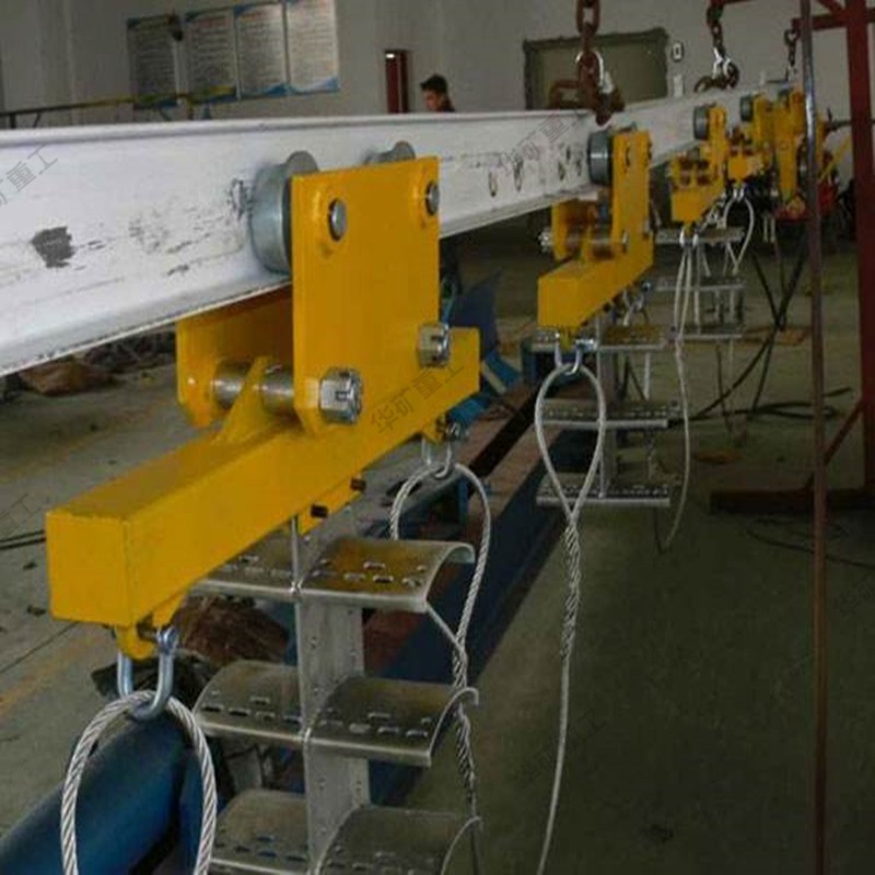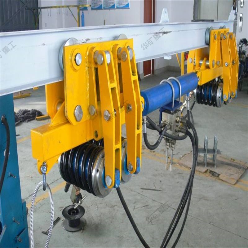 單軌吊車是用一條吊掛在巷道上空的特制工字鋼作軌道,由具有各種功能的吊掛車輛連成車組,用牽引設(shè)備牽引,沿軌道運行的系統(tǒng)。其牽引動力可由鋼絲繩、柴油機、蓄電池或風動裝置提供。
