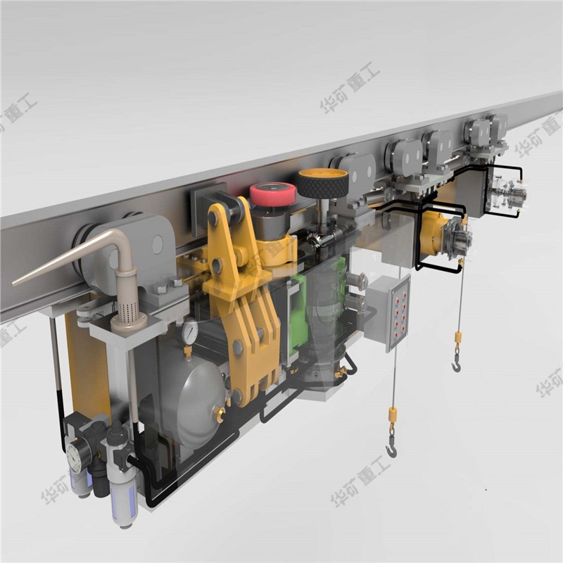 三是可完成從采區(qū)車場直至工作面不經(jīng)轉(zhuǎn)載的輔助運輸,可用于把主要運輸大巷和采區(qū)巷道連在一起的輔助運輸作業(yè)。本機驅(qū)動單軌吊運行靈活,一臺可多岔道多支線直達運輸,運行阻力小,效率高,用人少,能直接進入工作面;