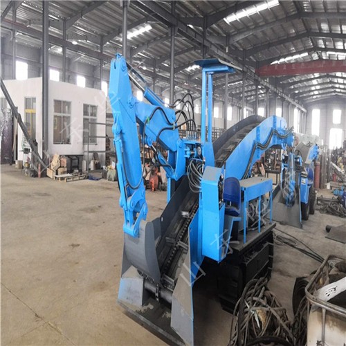 采用底盤分體設(shè)計,通過力強,可以靈活的通過巷道“小支脈”。輸送大架采用分體設(shè)計,對于豎井礦山下井安裝極為方便。皮帶采用pvg高拉力阻燃帶使用壽命長,可保證掘進(jìn)巷道距離為360m以上。 挖掘式裝載機扒渣機具由轉(zhuǎn)彎靈活,操作簡單,掘進(jìn)巷道不用調(diào)頭,效率高